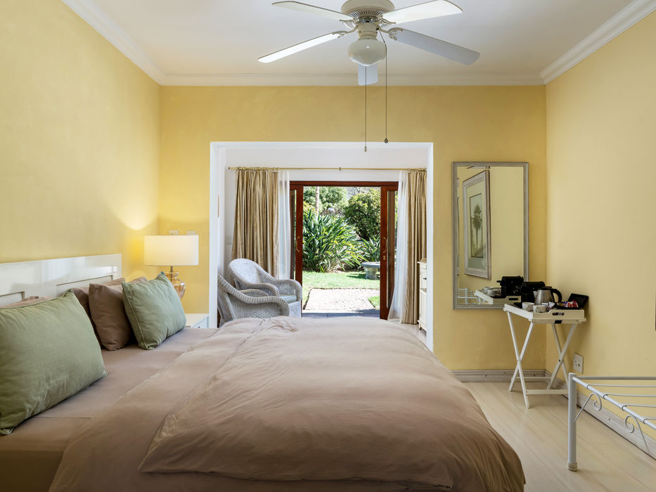 Choose between the Apricot Room with its king bed and garden-to-mountain views, or the Vanilla Room with flexible twin/king bedding and a terrace overlooking the sea and fynbos.